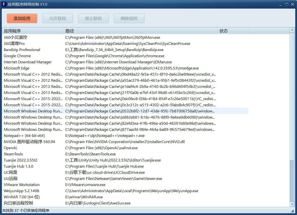 单文件应用程序网络控制工具引用系统防火墙控制程序的网络状态